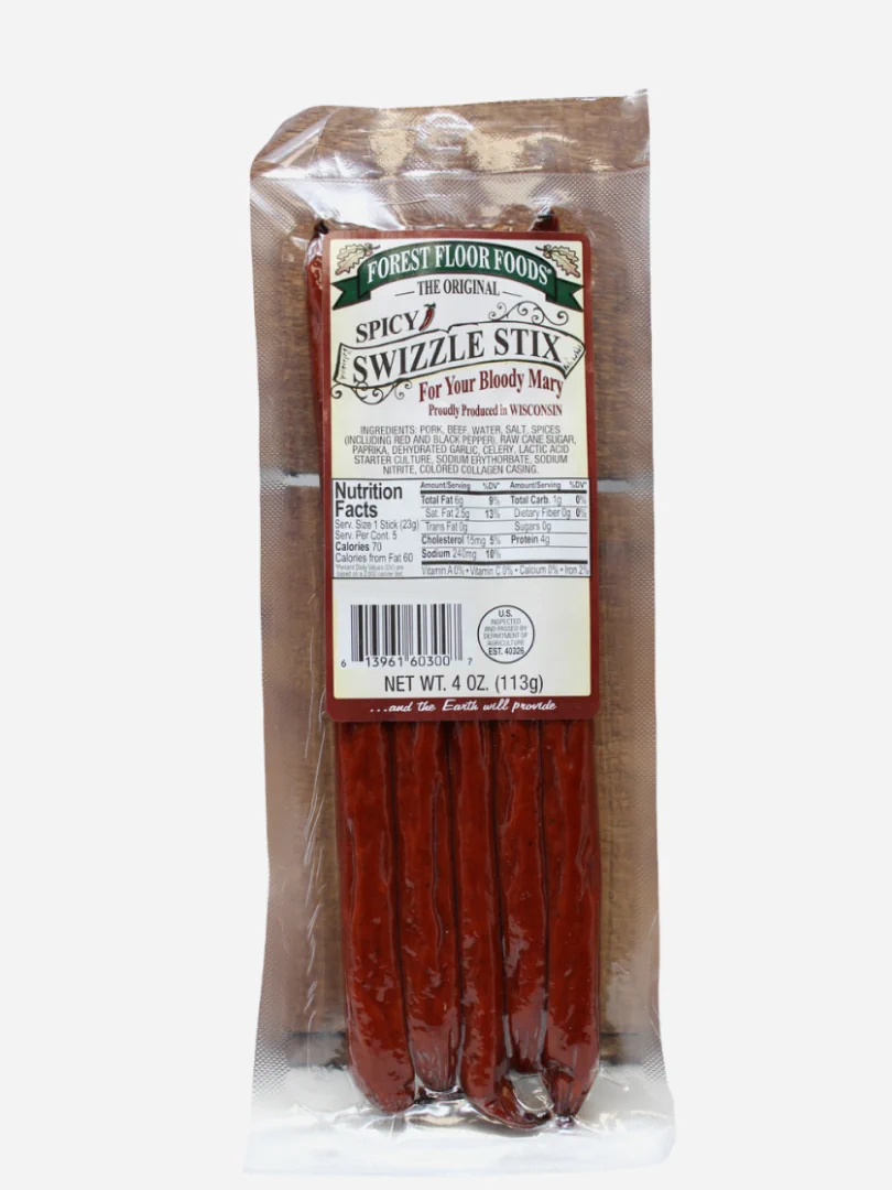 Bloody Mary Swizzle Stix – The “Original” Wisconsin All Meat Snack Swizzle. Stir things up with our hot Swizzle Stix in your Bloody Mary. Made from 100% all meat, each stix is 8″ tall. Save needing a spoon and mix all your Bloody’s this way!